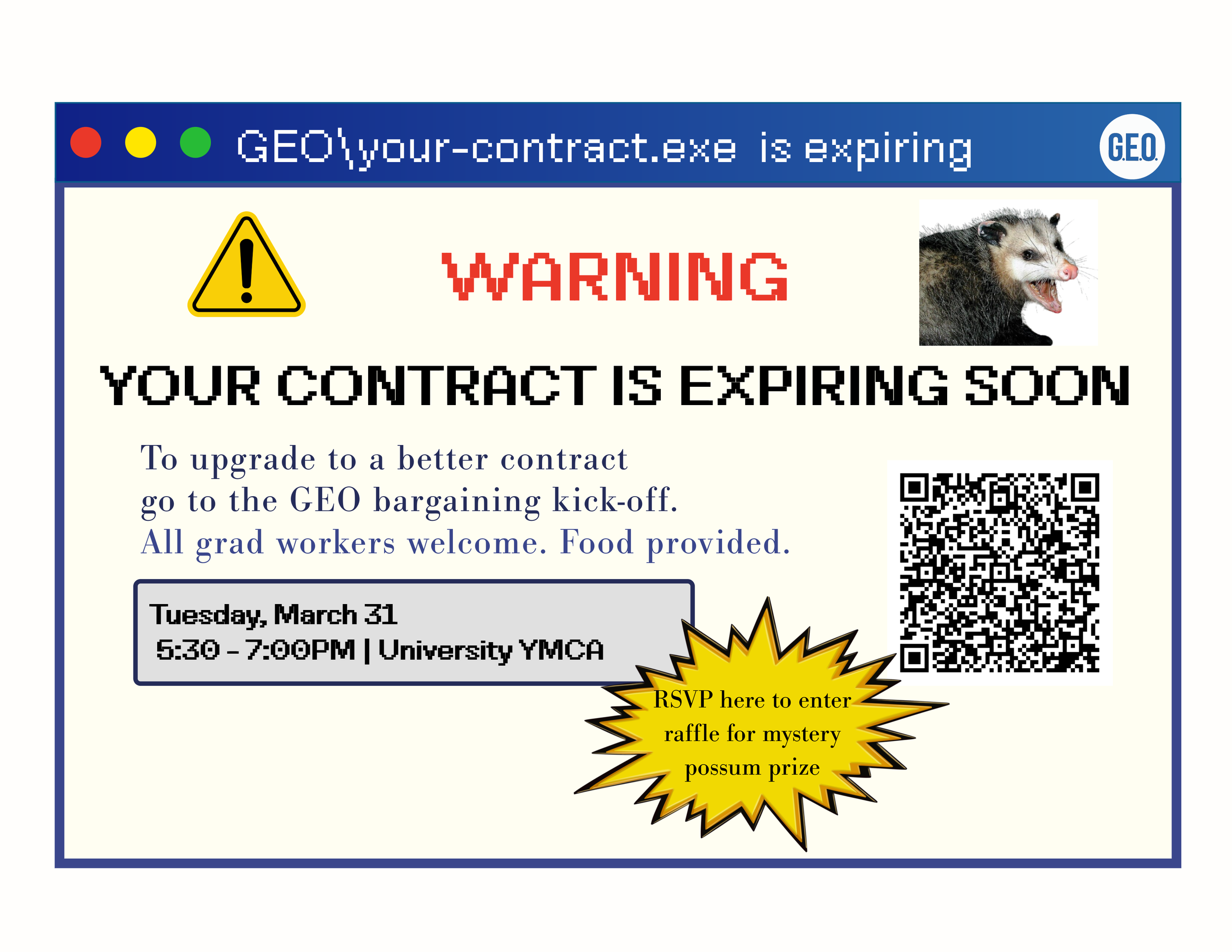 Learn how we have won past contracts and see what it will take to win strong improvements in the next one. Swing by, bring a friend, grab some free food, and see how graduate workers build power together. As members, this is also your chance to learn more about what we will be bringing to the bargaining table this cycle, so we hope to see you there!