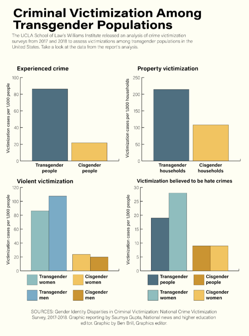 Findings from a UCLA report on violent crime victimization rates in transgender versus cisgender people.